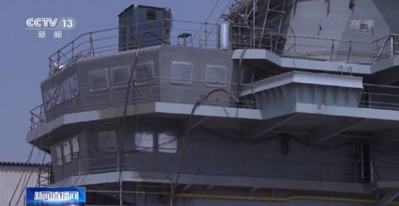 山東艦和遼寧艦這對姊妹艦在外形上也有區別,比如說艦島,駕駛艙下方多了一層玻璃,這個是在遼寧艦上是沒有的。還有一個區別,就是它的艦島要比遼寧艦短一些,這樣給艦載機留出了更大的活動空間。