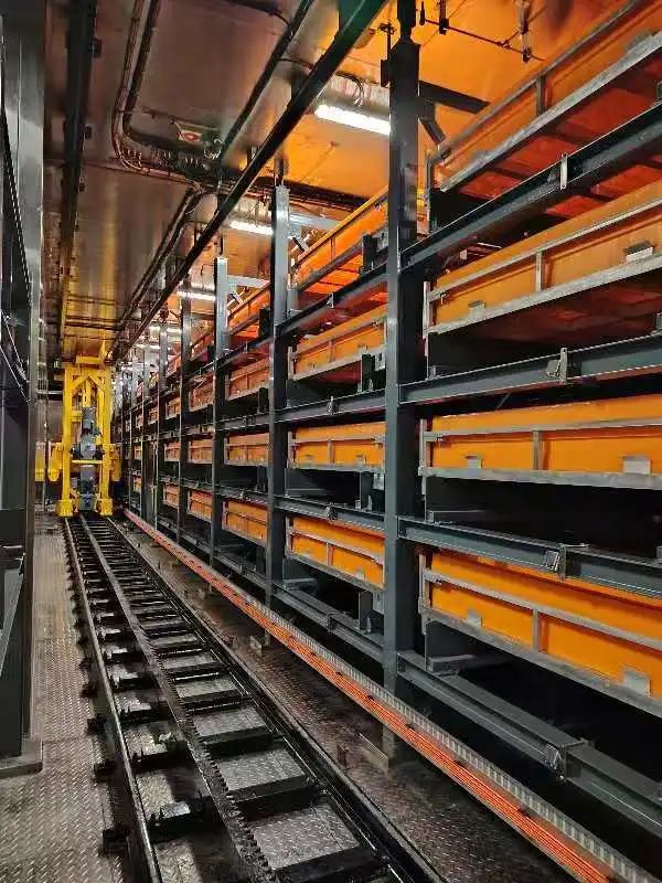 # 巖心庫內部配置了船載巖心庫自動倉儲系統(tǒng),實現(xiàn)了巖心托盤的自動存??;