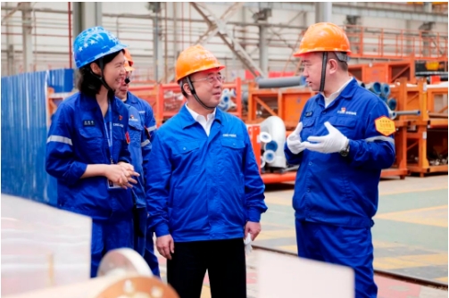 王國(guó)強(qiáng)深入科研生產(chǎn)一線,察看了船塢、智能生產(chǎn)線、重點(diǎn)實(shí)驗(yàn)室和產(chǎn)品,進(jìn)行了安全生產(chǎn)檢查,與一線科研人員、員工進(jìn)行深入交流,聽取了生產(chǎn)經(jīng)營(yíng)、科技研發(fā)、人才培養(yǎng)、黨的建設(shè)等情況匯報(bào)。