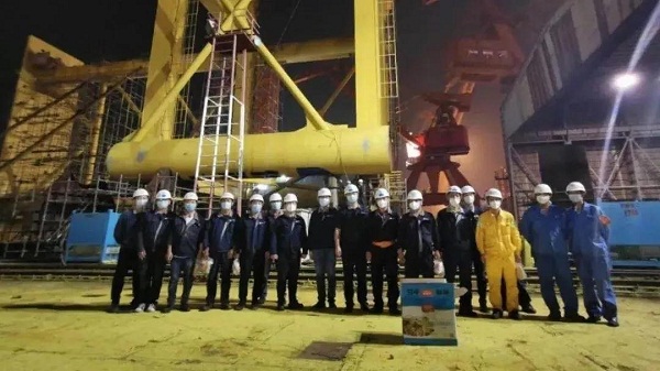 ????同一天,隨著最后一塊防沉平臺(tái)箱梁分段順利吊裝,黃埔文沖非船團(tuán)隊(duì)已經(jīng)連續(xù)奮戰(zhàn)十天十夜。至此,為保利長(zhǎng)大公司建造的明陽(yáng)華西單樁穩(wěn)樁平臺(tái)主體工程