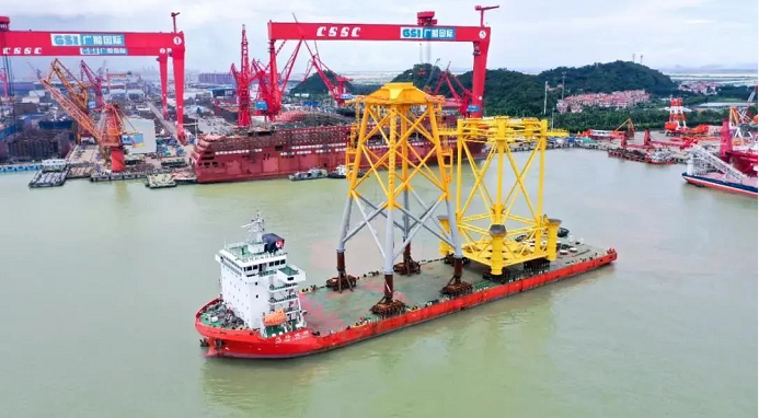 日前,由中國船舶集團旗下廣船國際承建的廣東陽江南鵬島300兆瓦海上風電項目首套導管架及輔助平臺順利交運。這是廣船國際承建并交運的首批首個風電導管架,也是目前國內(nèi)最大的風電導管架,標志著廣船國際在風電業(yè)務領域?qū)崿F(xiàn)了經(jīng)營、生產(chǎn)、交付全環(huán)節(jié)突破,對后續(xù)承接風電項目業(yè)務、拓展風電市場具有重要意義。