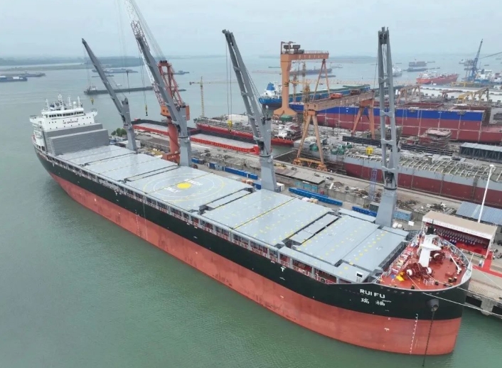 “瑞福”號是同型船的第10艘,具有裝載重大件設備貨和集裝箱式貨物的能力,首航將裝載風電設備等貨物,并投入南非航線。