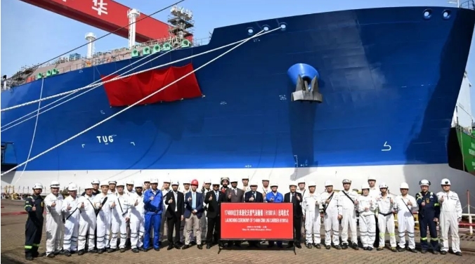 17.4萬立方米LNG運輸船“遠海奮進”號(Ocean Inspiration)在滬東中華新廠區正式命名。