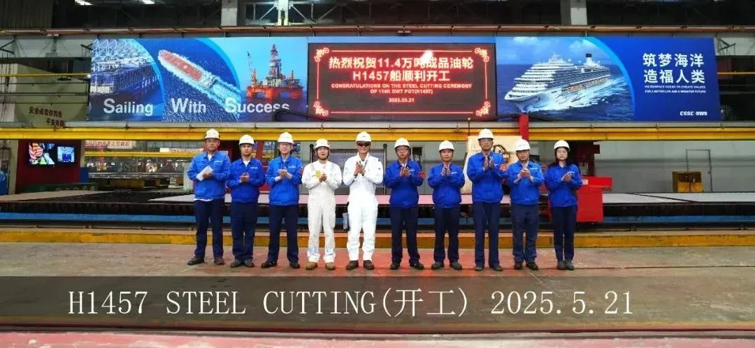 5月21日,外高橋造船為土耳其YASA公司建造的11.4萬(wàn)噸阿芙拉型油船H1457船開(kāi)工儀式順利舉行。目前,各項(xiàng)生產(chǎn)準(zhǔn)備工作均在按計(jì)劃落實(shí)。