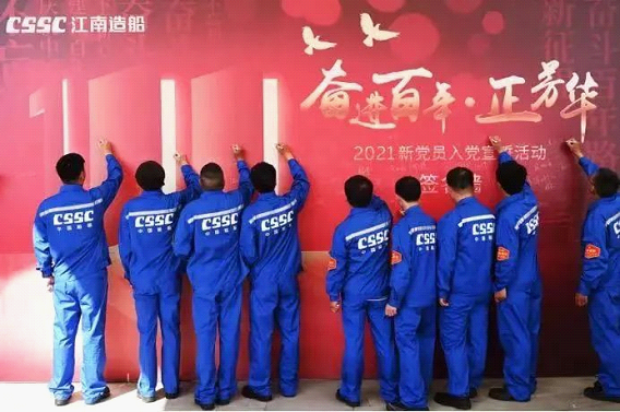 在慶祝中國共產黨成立100周年之際,100名來自中國船舶集團的產業工人新黨員在江南造船博物館集中進行了入黨宣誓